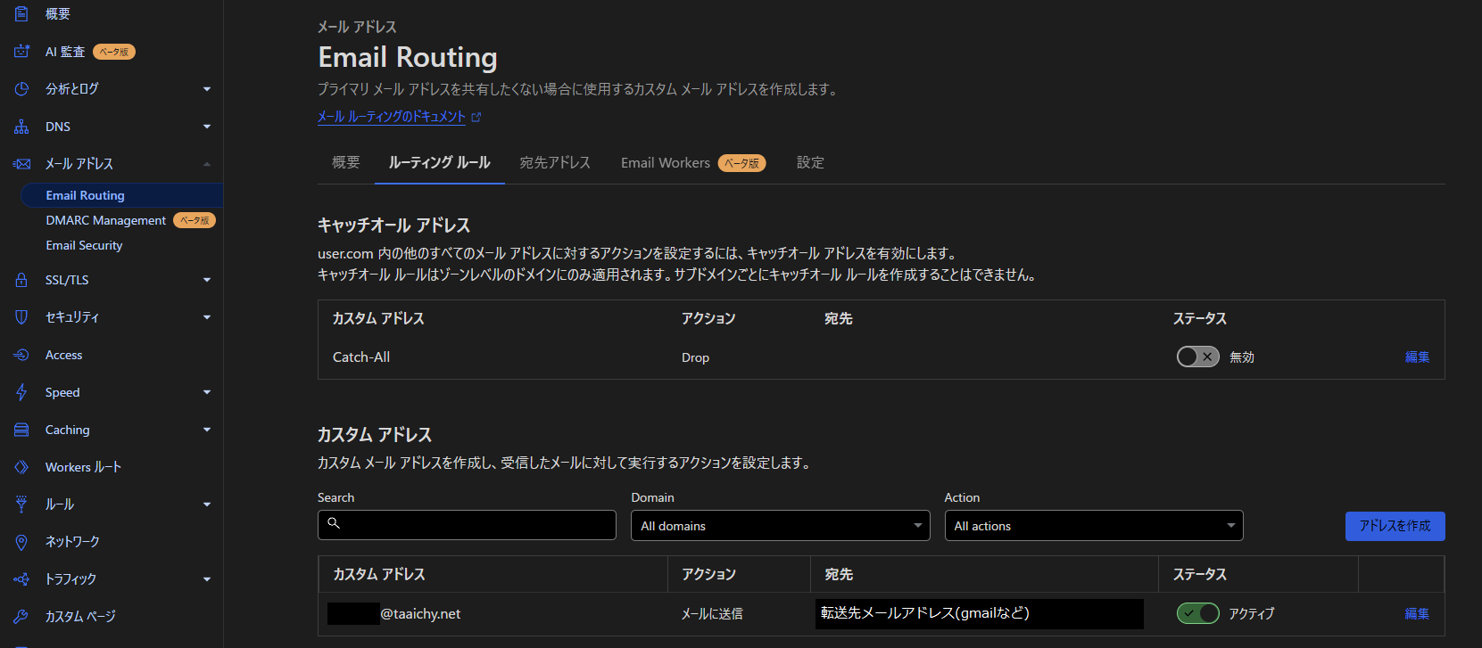 勉強用でCloudflareで取得したドメイン(taaichy.net)でメール送受信してみたくなった。