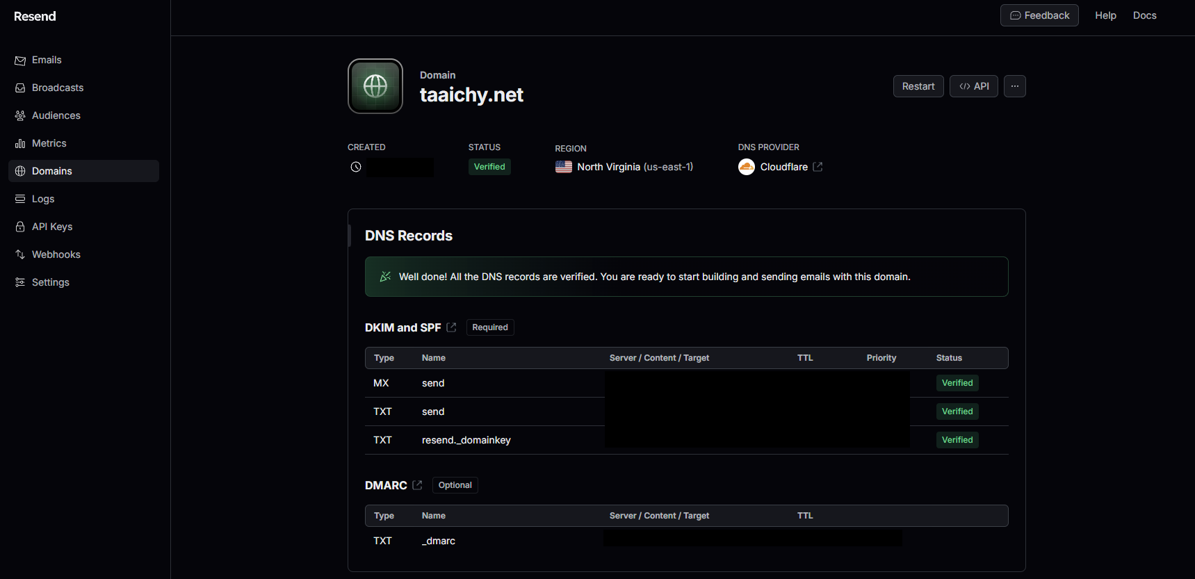ドメイン追加→MX/TXTレコードをCloudflare側で追加。