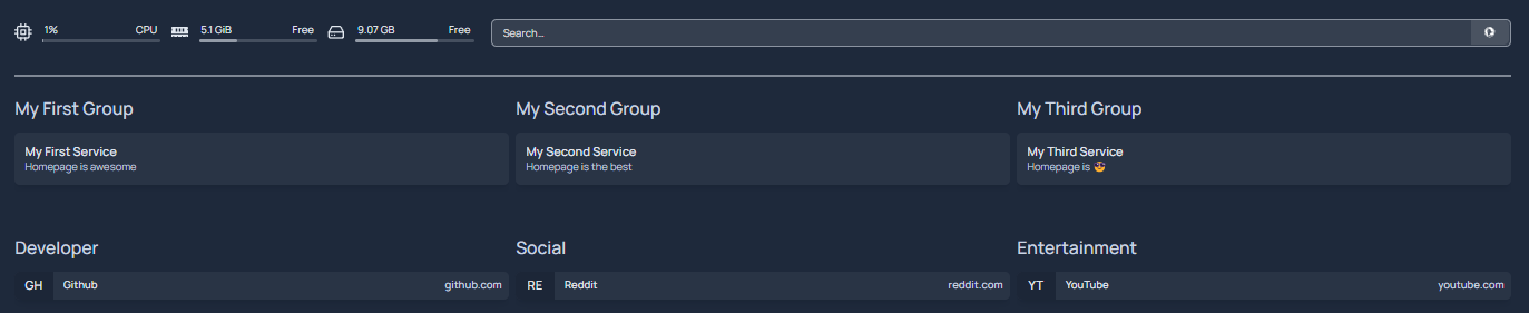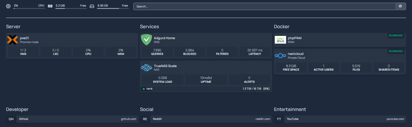 ということで「homepage」をホストし、1クリックで各サービスにアクセスできるようなダッシュボードを作成する。